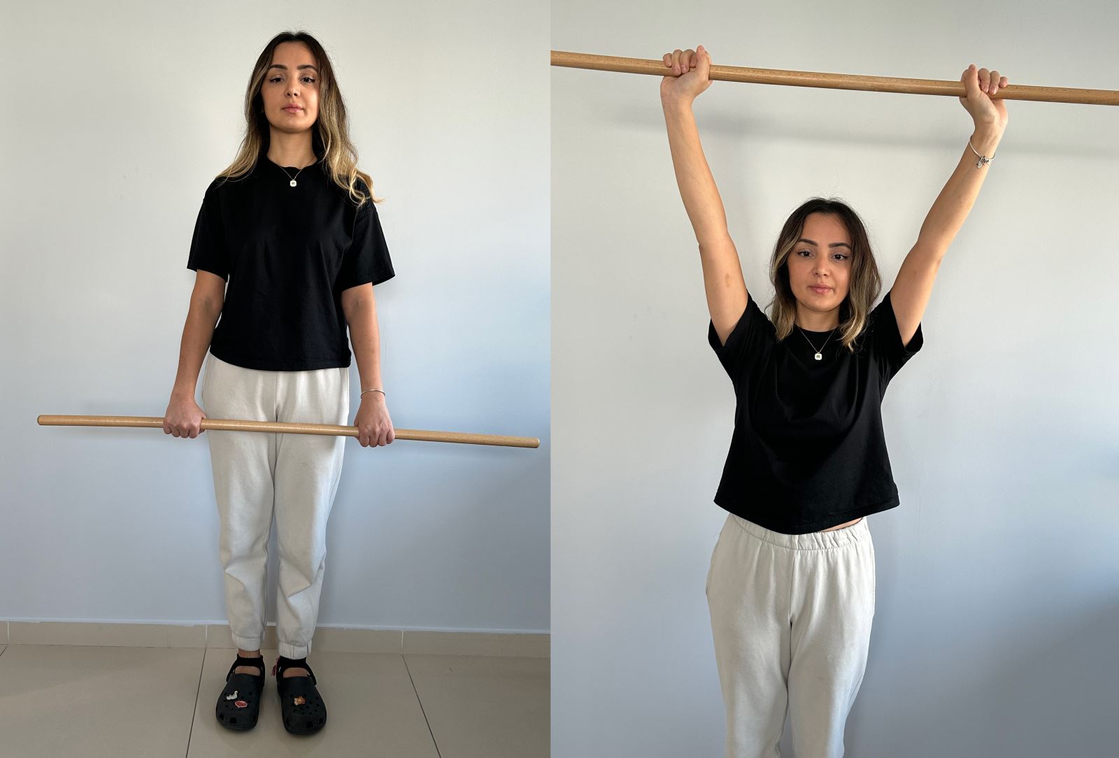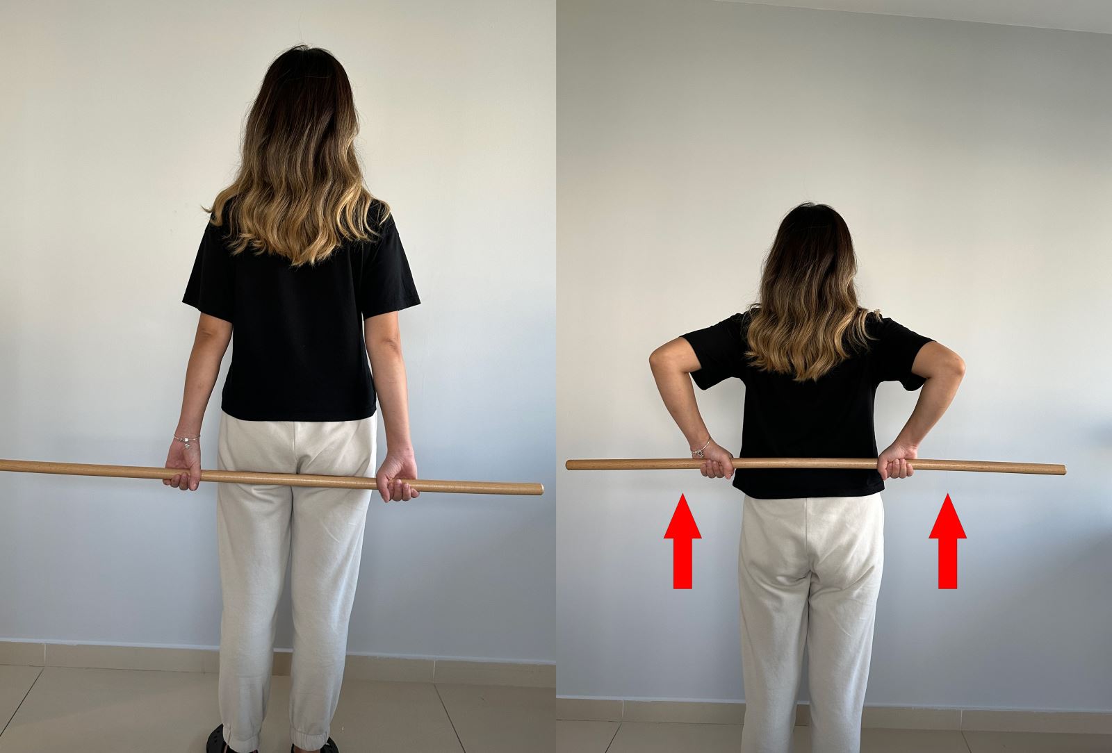 Ayakta dururken omuz genişliğinde açık olan kollarınızla gövde arkasında tuttuğunuz sopayı