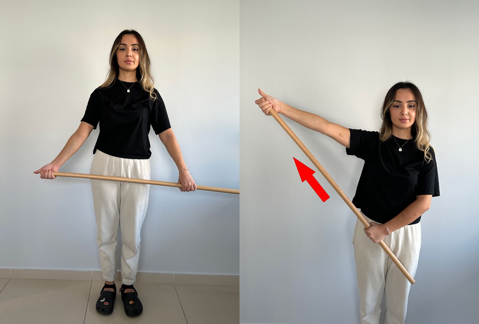 tuttuğunuz sopayı sağlam kolunuzun yardımıyla yukarı doğru kaldırın.