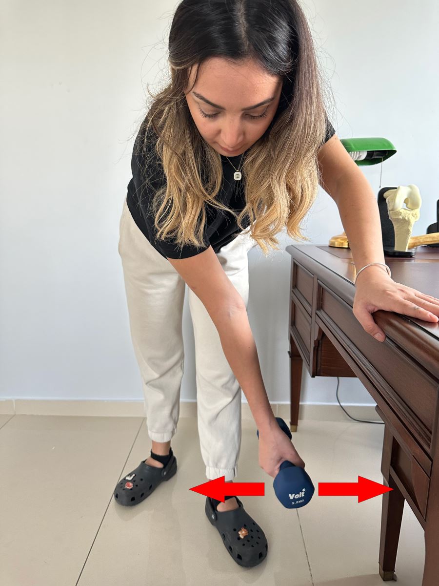Hasta taraf elinizle uygun miktarda tuttuğunuz ağırlığı sağdan sola doğru sallayın.