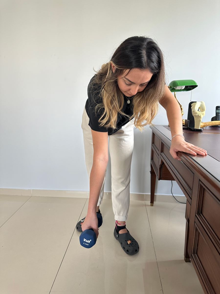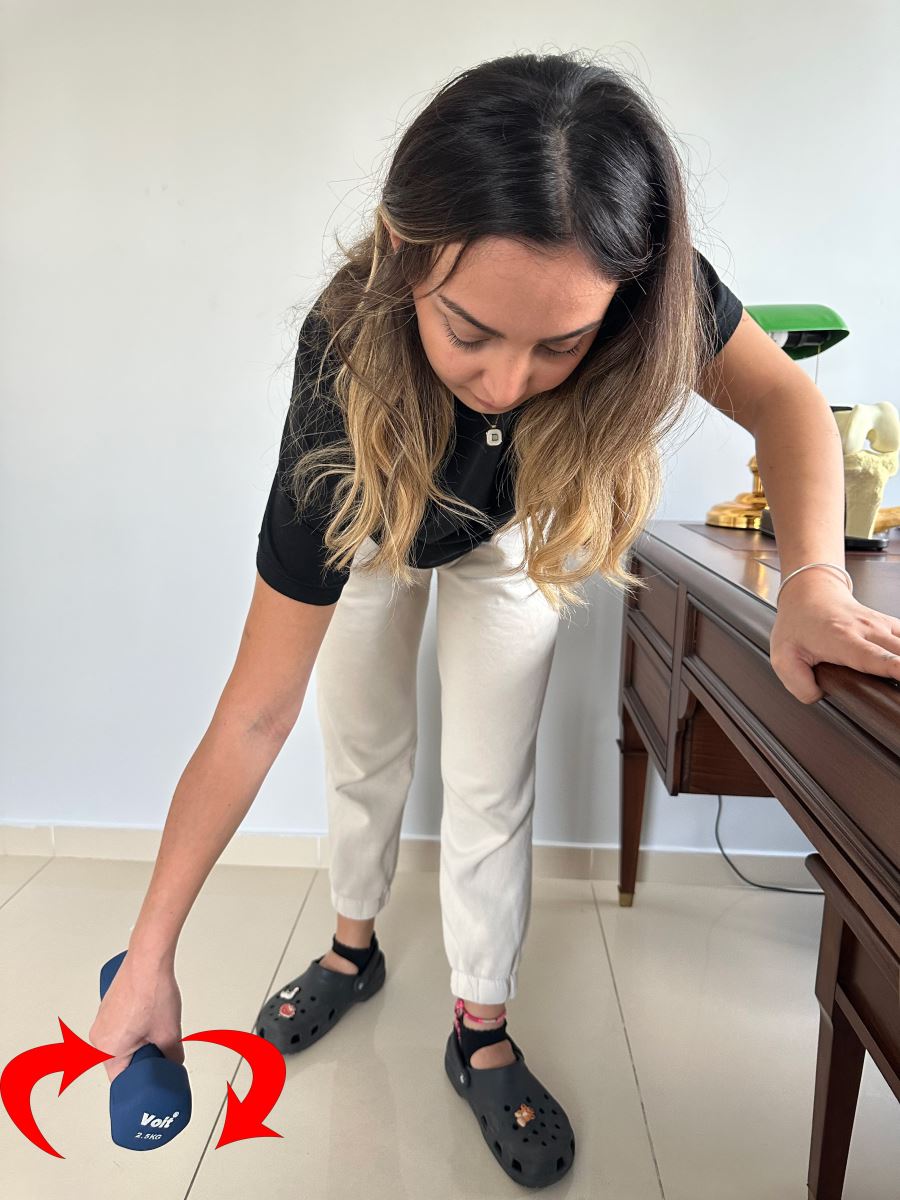 Hasta taraf elinizle uygun miktarda tuttuğunuz ağırlıkla kolunuza dairesel hareketler yaptırın.