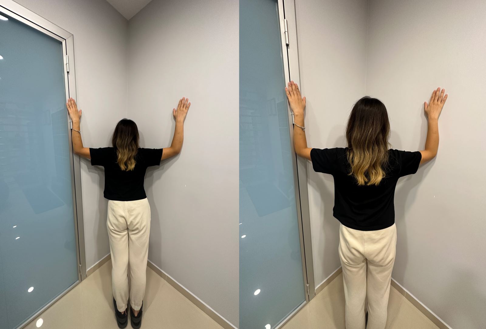 Yüzünüz bir duvar köşesine bakacak şekilde, dirsekleriniz bükülü ve omuz hizasındayken