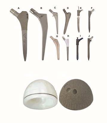 A. Diz ve B. Kalça değiştirme ameliyatlarında kullanılan protez parçaları