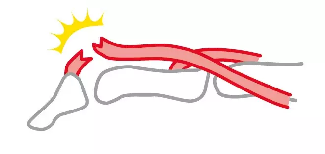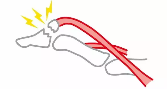 Çekiç parmakta parmak ucu düşer ve kendi başına düzelemez.