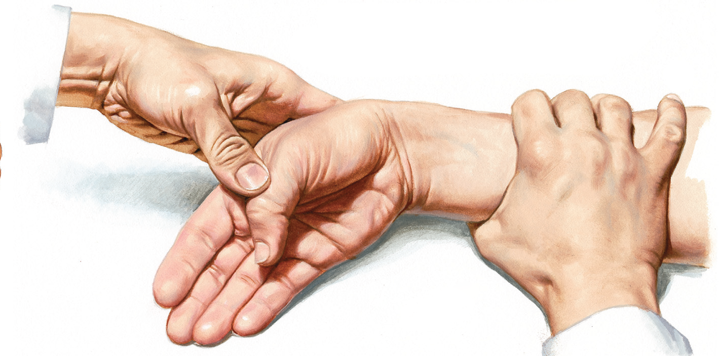 Muayene sırasında ağrının yeri şüphe uyandırır. Bileğin başparmak kısmına dokunarak ağrı ve şişlik olup olmadığına bakılır. Hastaya başparmağını avuç içine yerleştirip yumruk yapması, sonra da doktorun hastanın el bileğini küçük parmak tarafına doğru bükmesi ile ağrı ortaya çıkar. Bu test De Quervain tenosinoviti için tanı koydurucudur.