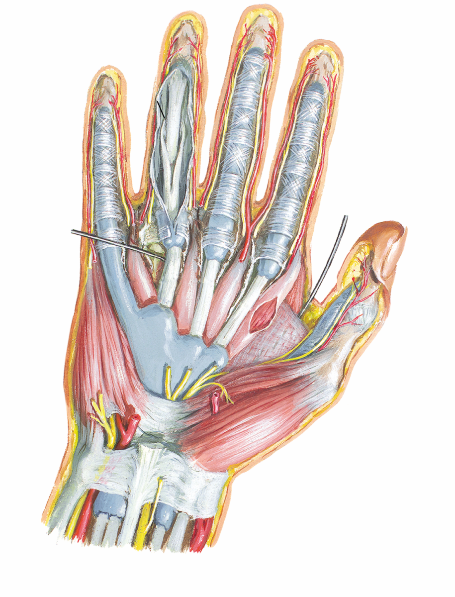 A, B: Fleksör tendon anatomisi. Fleksör tendonlar parmaklarımızı büker.