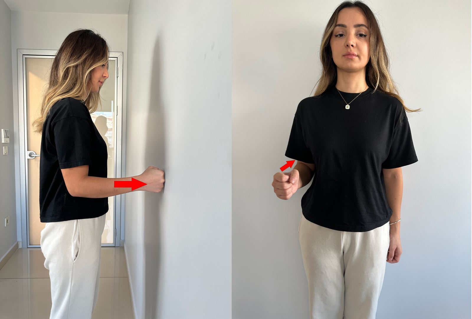 Yüzünüz duvara dönük olacak şekilde pozisyon alarak yumruğunuzla duvarı öne doğru itin.