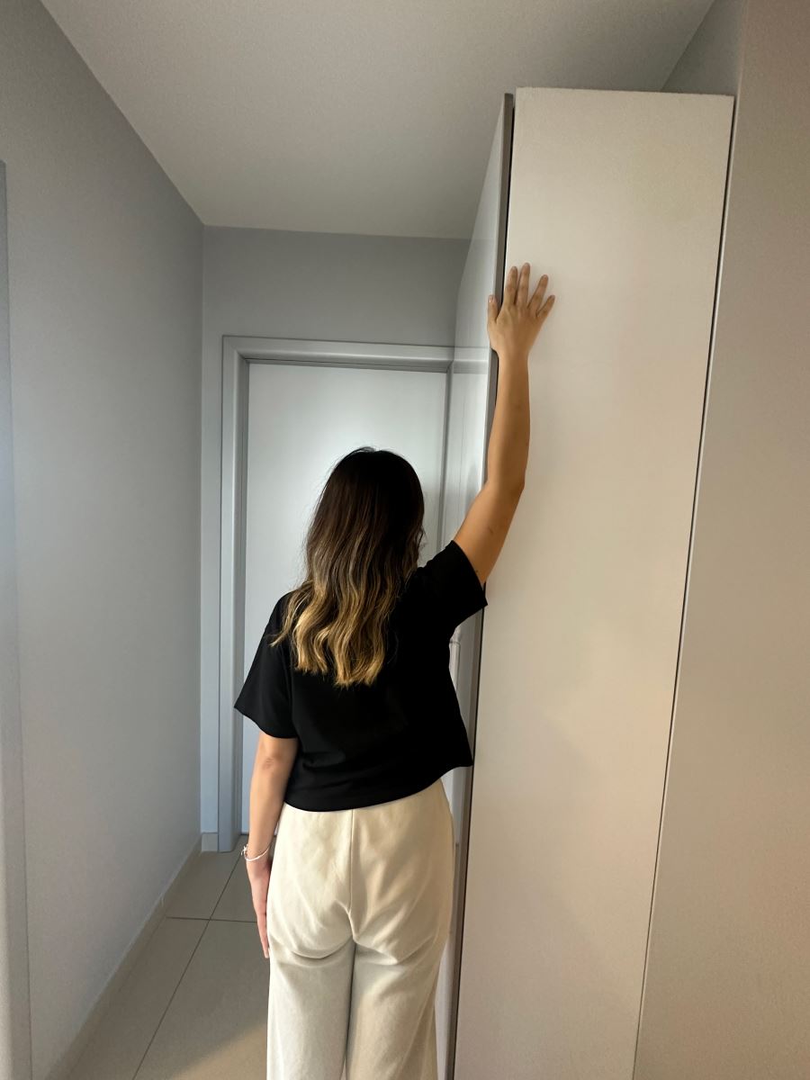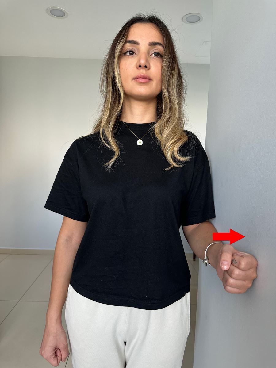 Yüzünüz bir duvar köşesine bakacak şekilde, dirsekleriniz bükülü ve omuz hizasındayken
