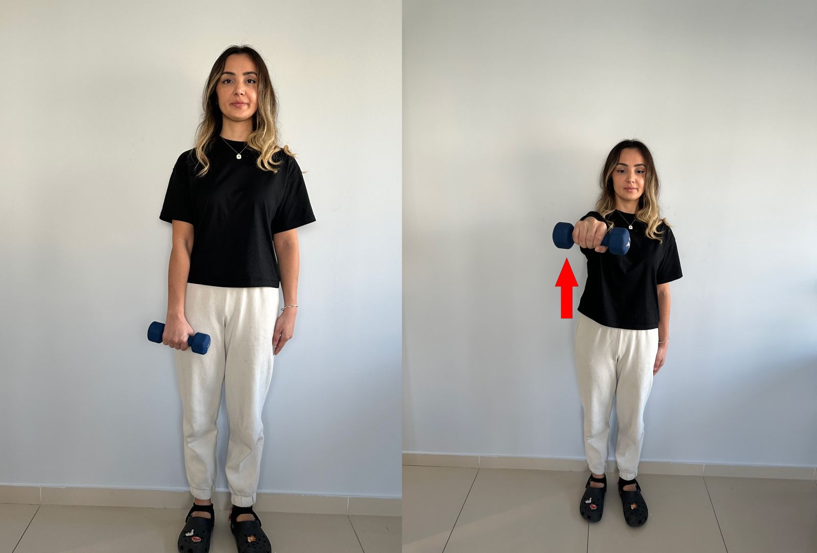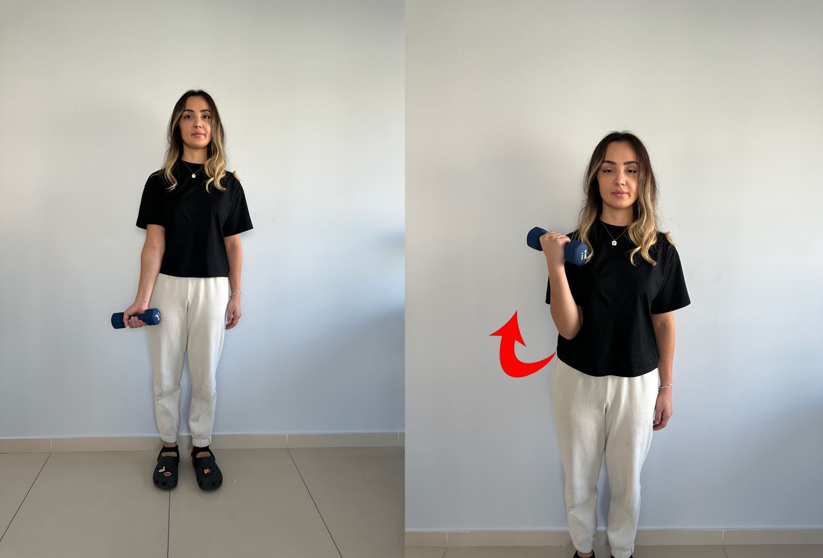 Elinizi omzunuza doğru götürerek dirseğinizi bükün ve yavaşça indirin.