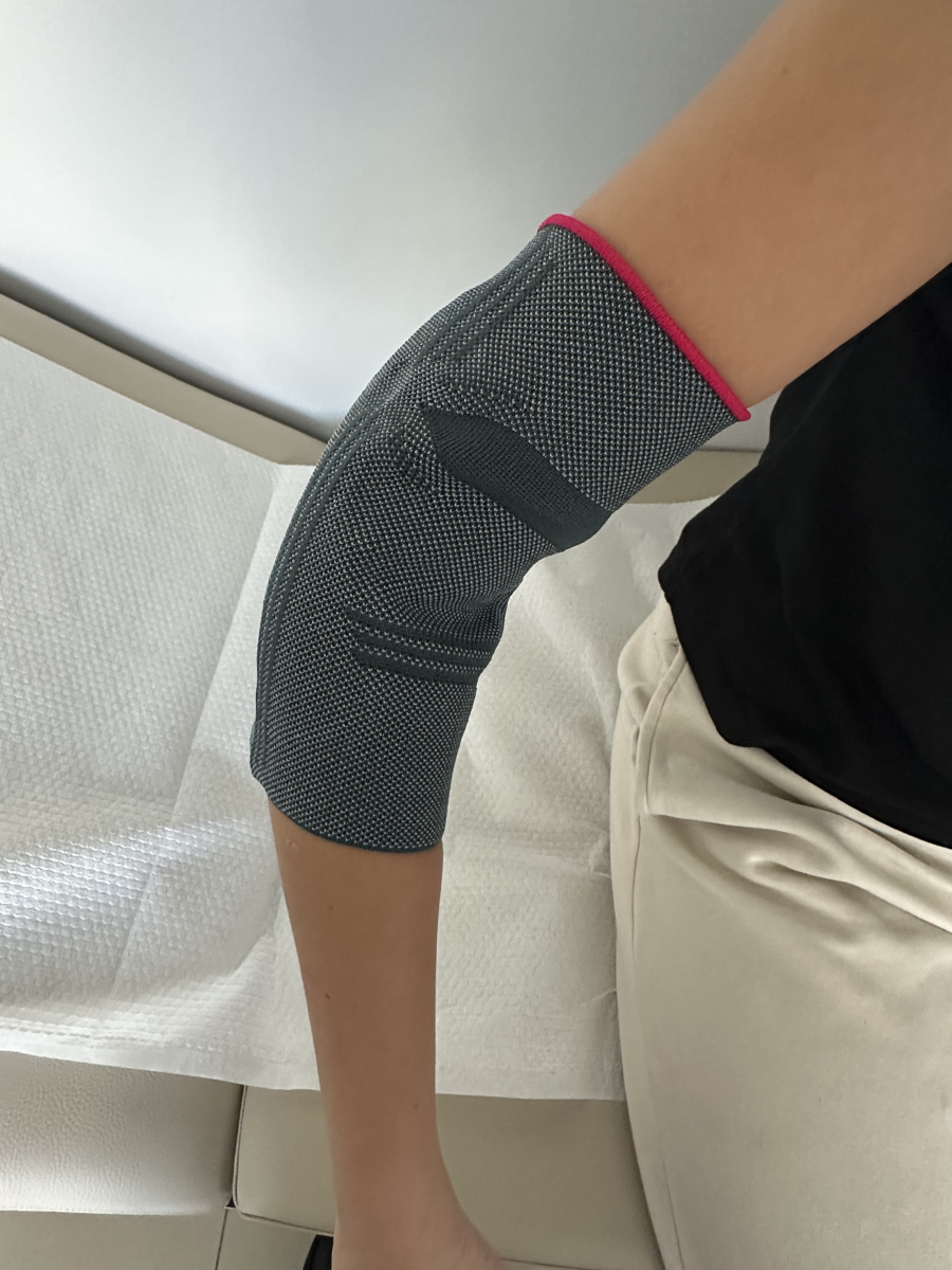 Buz tatbiki ve dirsek bandı uygulaması: Soğuk kompres uygulamasıyla beraber dirseğe yerleştirilen bantlarla dirsekten parmaklara ve el bileğine uzanan kas grubunun hareketi kısıtlandırılır.