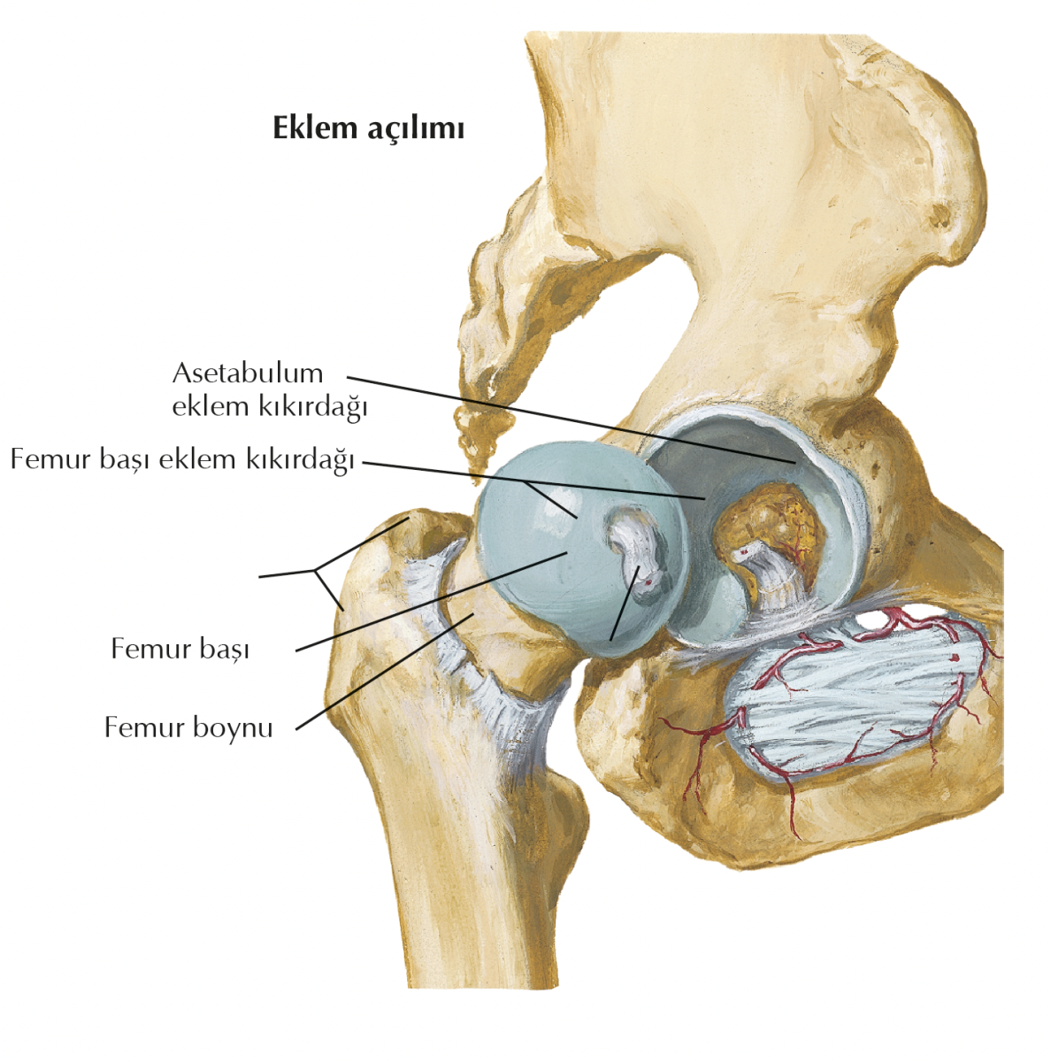 Kalça ekleminde eklem yüzeyini kaplayan kıkırdaklar ve eklem içinde üretilen sıvı sayesinde kemikler birbirleri üzerinde hemen hemen hiç sürtünme olmaksızın rahatça hareket eder. Eklem kapsülü ve bağlar eklemin stabilitesini sağlar.