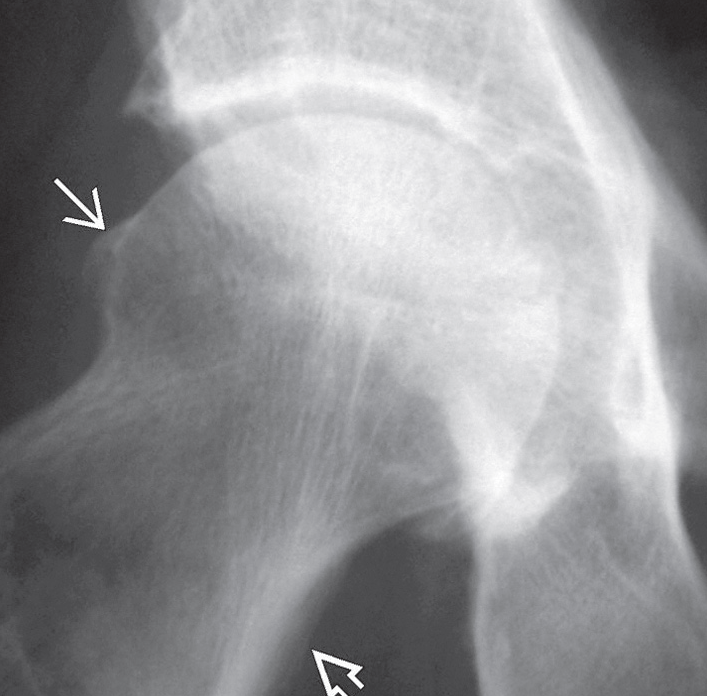 Kalça kireçlenmesi grafisi. Eklem aralığı daralmış.