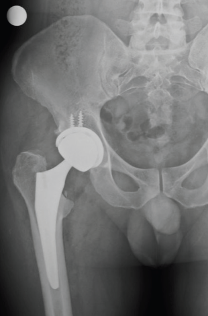Sağ kalçasına protez uygulanan hastanın pelvis grafisi